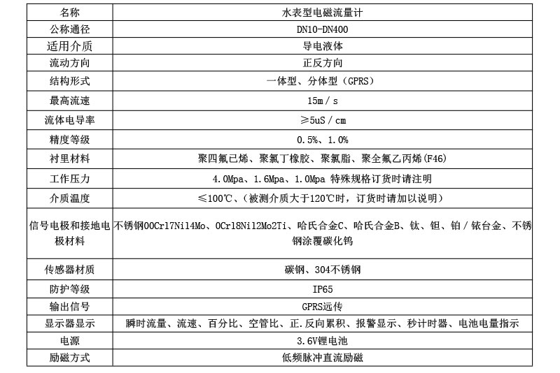TJLDS电磁式水表采用特殊设计的传感器励磁系统和高性能锂电池供电系统,并采用了16位嵌入式超微功耗处理器,全数字量信号处理,具有工作稳定、测量精度高、抗干扰能力强等特点,支持GPRS无线传输,IP68防水,用于市政供水、污水处理等。