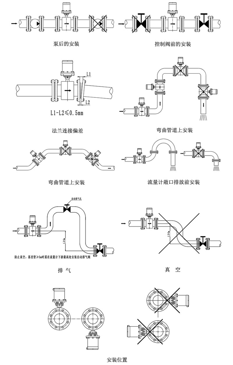 b、工艺管与流量计需同心,同轴偏差不大于0.05DN