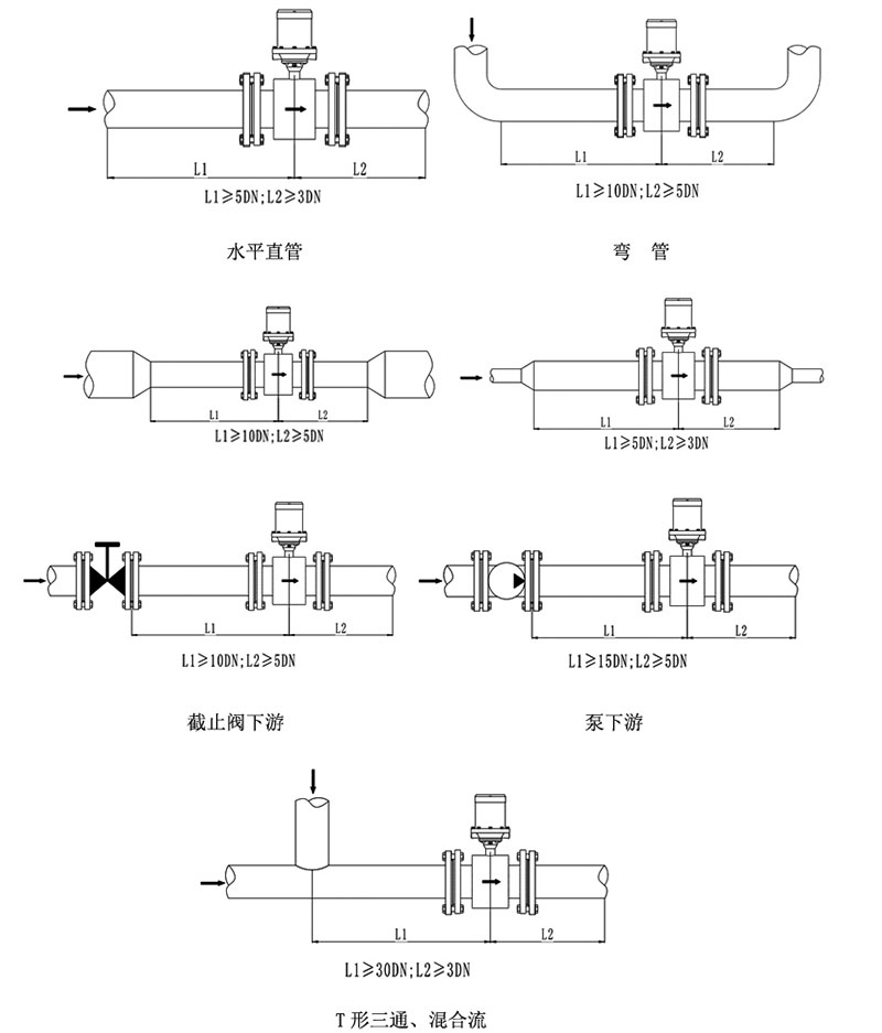 使用直管段可防止介质因弯管、TT型三通、截止阀、变径管的影响而产生涡流或失真