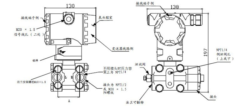 1.防止变送器与腐蚀性或过热的补测介质相接触 2.要防止渣滓在导压管内沉积 3.导压管要尽可能短一些 4.两边导压管内的液柱压头应保持平衡 5.导压管应安装在温度梯度和温度波动小的地方 6.防止引压管内结晶或低温结冰 7.请勿将排气/排液阀全部拧开,以免密封钢珠掉落