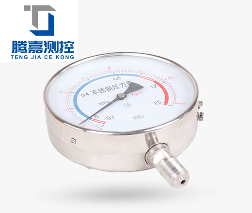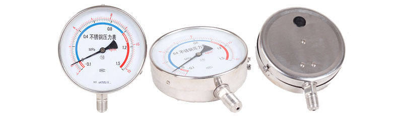 不锈钢压力表采用直接接触式接头和感压元件材料,采用icr18Ni9T、Ocr18Ni12Mo2Ti、 sus316,结构为全密封型,不锈钢压力表具有较强的防被测介质腐蚀和抗环境腐蚀的能力。不锈钢压力表适用于腐蚀性较强的适合不锈钢元件检测的介质和恶劣的外部腐蚀环境中 ,不锈钢压力表广泛应用于石油、化工、冶金等工业。