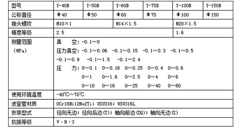 测量范围 0.1~0 MPa,0.1~100MPa,160MPa,350MPa