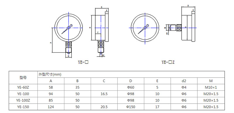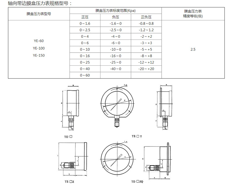 TJ-YE系列不锈钢膜盒压力表根据普通膜盒压力表的结构原 理而研制的具有耐腐蚀的微压测量仪表。导压系统及 外壳均采用不锈钢材料制成。