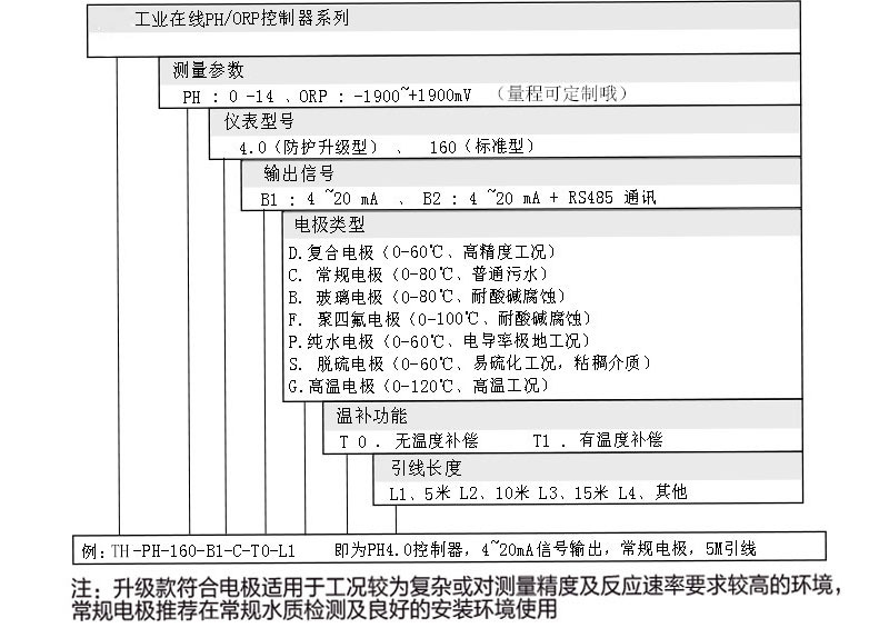 产品型号:TH-PH4.0型 产品名称:在线PH控制器 分 辨 率:±0.02PH;±1mv 稳 定 性:≤0.02PH/年;≤3mv/年 输入阻抗:≥10^12Ω 温度范围:0-120℃;NTC10K 温度补偿:0-100℃手动/自动补偿 变送输出:隔离变送4-20mA 控制输出:上下限继电器开关量输出,RS485通讯 供电电源:220VAC/24VDC 开孔尺寸:92mm*92mm