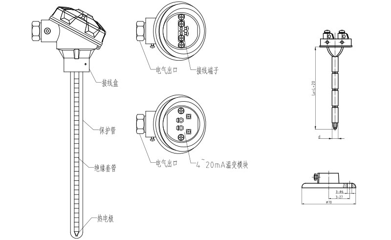 WRN热电偶(thermocouple)是温度测量仪表中常用的测温元件,它直接测量温度,并把温度信号转换成热电动势信号,通过电气仪表(二次仪表)转换成被测介质的温度。各种热电偶的外形常因需要而极不相同,但是它们的基本结构却大致相同,通常由热电极、绝缘套保护管和接线盒等主要部分组成,通常和显示仪表、记录仪表及电子调节器配套使用。