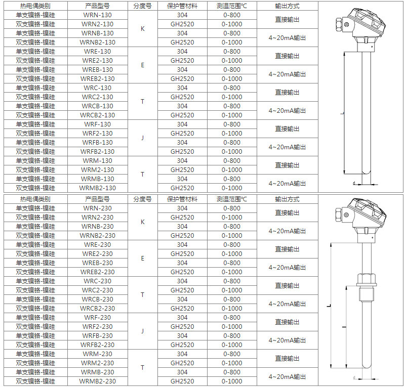 WRN热电偶(thermocouple)是温度测量仪表中常用的测温元件,它直接测量温度,并把温度信号转换成热电动势信号,通过电气仪表(二次仪表)转换成被测介质的温度。各种热电偶的外形常因需要而极不相同,但是它们的基本结构却大致相同,通常由热电极、绝缘套保护管和接线盒等主要部分组成,通常和显示仪表、记录仪表及电子调节器配套使用。