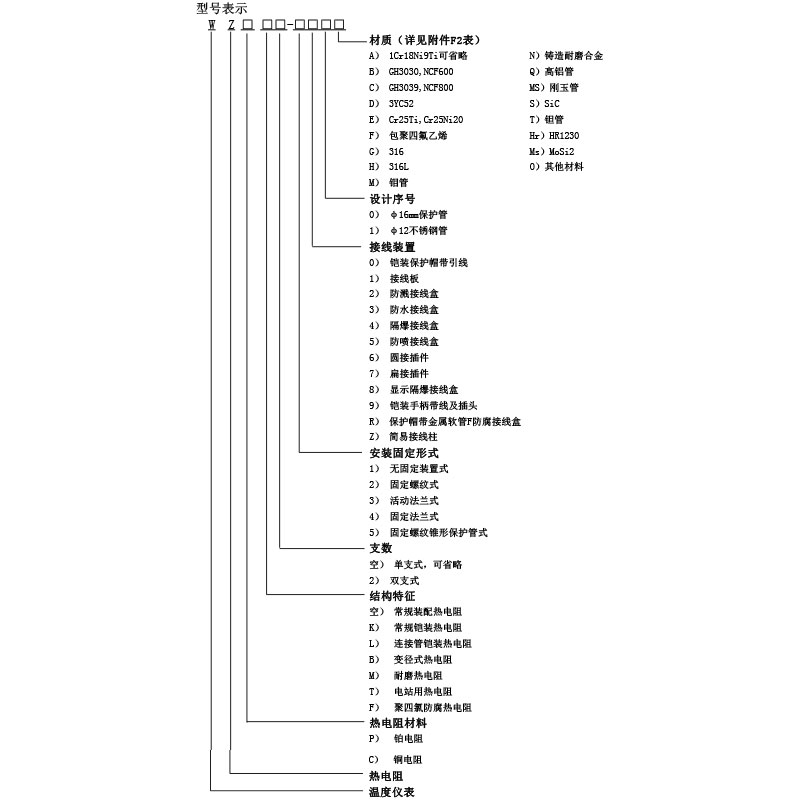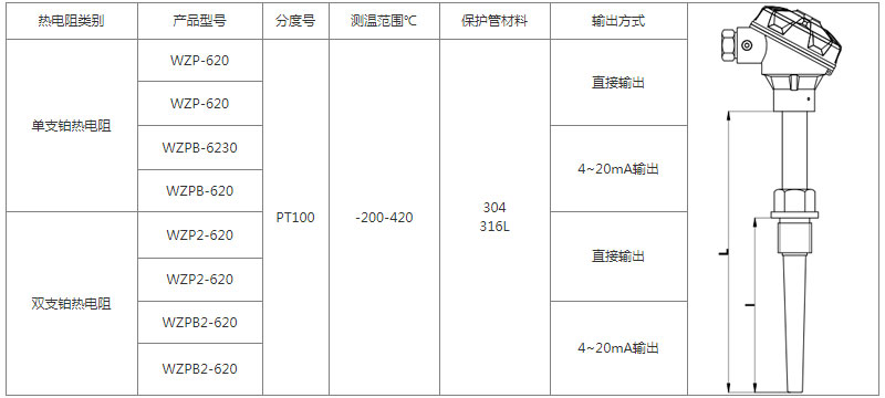WZP热电阻(thermal resistor)是中低温区常用的一种温度检测器。热电阻测温是基于金属导体的电阻值随温度的增加而增加这一特性来进行温度测量的。它的主要特点是测量精度高,性能稳定。其中铂热电阻的测量度是高的,它不仅广泛应用于工业测温,而且被制成标准的基准仪。热电阻大都由纯金属材料制成,目前应用多的是铂和铜,此外,现在已开始采用镍、锰和铑等材料制造热电阻。金属热电阻常用的感温材料种类较多,常用的是铂丝。工业测量用金属热电阻材料除铂丝外,还有铜、镍、铁、铁—镍等。