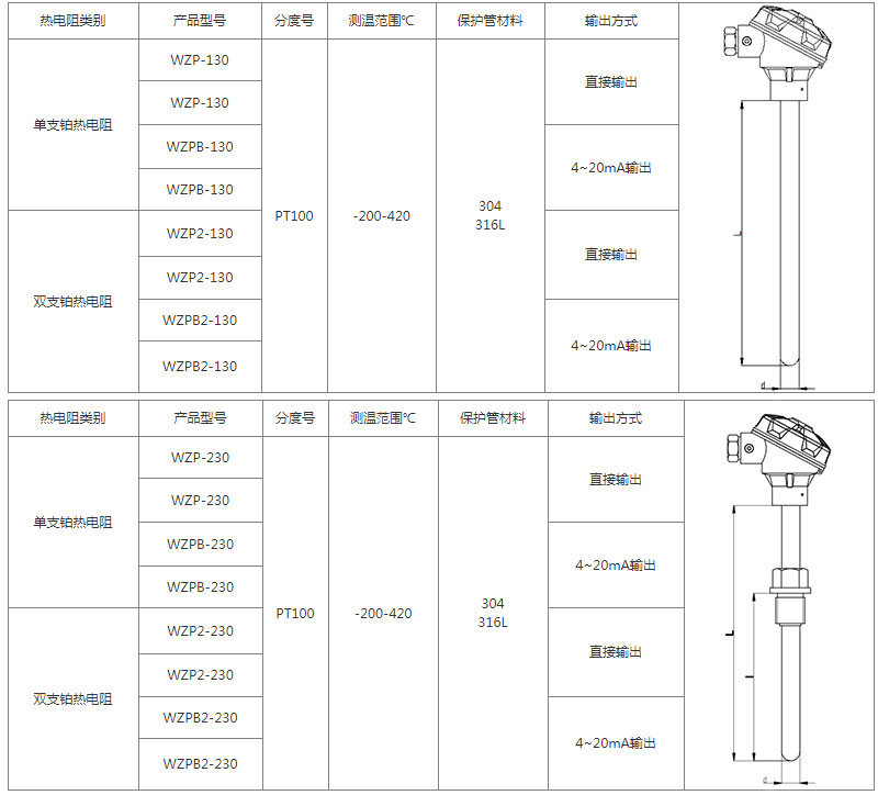 TH-WZP热电阻(thermal resistor)是中低温区常用的一种温度检测器。热电阻测温是基于金属导体的电阻值随温度的增加而增加这一特性来进行温度测量的。它的主要特点是测量精度高,性能稳定。其中铂热电阻的测量度是高的,它不仅广泛应用于工业测温,而且被制成标准的基准仪。热电阻大都由纯金属材料制成,目前应用多的是铂和铜,此外,现在已开始采用镍、锰和铑等材料制造热电阻。金属热电阻常用的感温材料种类较多,常用的是铂丝。工业测量用金属热电阻材料除铂丝外,还有铜、镍、铁、铁—镍等。