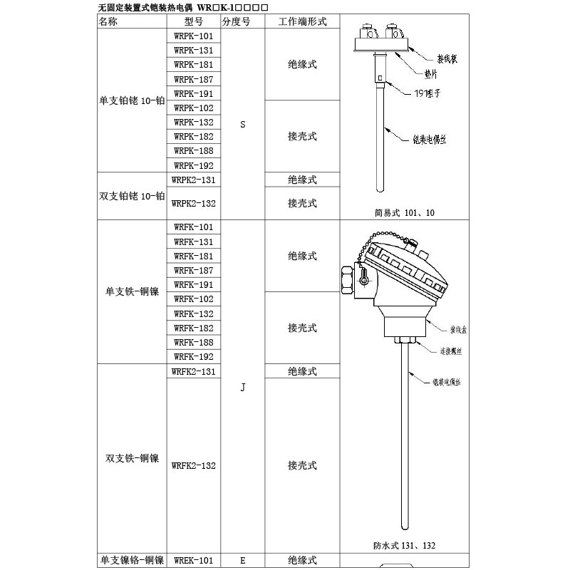 WRNK-106/136/196铠装热电偶