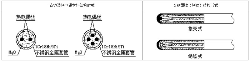 铠装热电偶的工作原理是由两种不同成分的导体两端经焊接,形成回路,直接测量端叫测量端,接线端子叫参比端。当测量端和参比端存在温差时,就会在回路中产生热电流,接上显示仪表,仪表上就会指示出热电偶所产生的热电式的对应温度值。铠装热电偶的热电势将随着测量端的温度升高而增长,热电势的大小只和铠装热电偶导体材质以及两端温度有关,和热电极的长度、直径无关。铠装热电偶的结构是由导体、绝缘氧化模和 l Cr 1 8Ni9Ti 不锈钢保护管多次拉制而成。铠装热电偶产品主要由接线盒、接线端子和铠装热电偶组成基本结构,并配以各种固定装置组成。