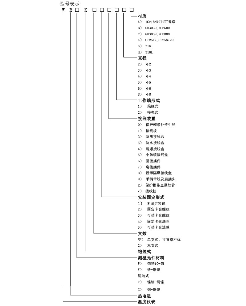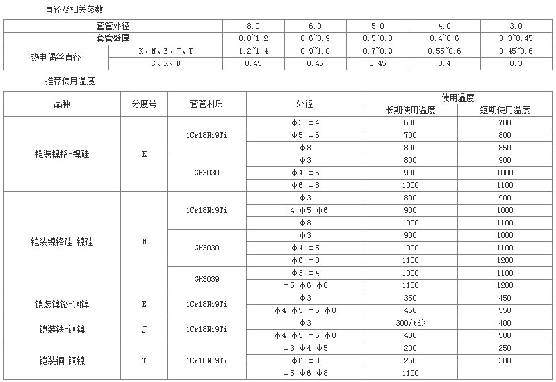 TJ-WRNK铠装热电偶作为温度测量传感器,通常与温度变送器、调节器及显示仪表等配套使用,组成过程控制系统,用以直接测量或控制各种生产过程中0-1800℃范围内的流体、蒸汽和气体介质以及固体表面等温度。铠状热电偶具有能弯曲、耐高压、热响应时间快和坚固耐用等许多优点,它和工业用装配式热电偶一样,作为测量温度的传感器,通常和显示仪表、记录仪表和电子调节器配套使用。