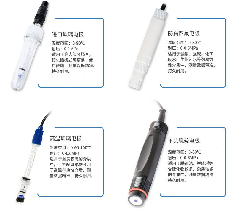 脱硫耐磨电极采用平头脱硫,用于烟气脱硫中的PH测量,该电极采用凝胶电极,免维护,电极在高温或者高PH值下仍能保持高精度,采用平面玻璃球泡,耐高污染、耐冲性强。广泛适用于石灰水、脱硫、粘性大液体、浆液等环境,使用方便,可较少次数地清洗,平头PH电极,不容易粘着浆液,适合条件恶劣的环境检测。